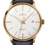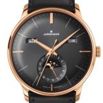 Ein besonderes Funkeln zeigt sich auch im Goldton weiterer Modelle der Meister-Linie. Harmonisch bis ins Detail ist die Meister Kalender, deren Gehäuse und die Gestirne der Mondanzeige roségoldfarben glänzen. Eine feine Besonderheit ist bei der Betrachtung der Himmelskörper zu entdecken: das Firmament wird von einem Junghans-Stern erhellt.