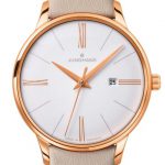 In goldenen Tönen zeigt sich auch die Meister Telemeter, die mit dem silbern glänzenden Zifferblatt und der fein gestalteten Telemeterskala nicht nur zu sportlichen Anlässen getragen werden kann. Für das stilvolle Outfit ist die Meister Classic als elegante Drei-Zeiger-Uhr die perfekte Ergänzung.