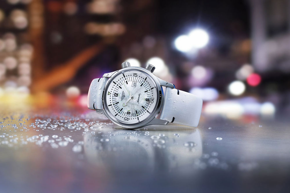 Die neuen Varianten von The Longines Legend Diver Watch bergen in ihrem Stahlgehäuse von 36 mm Durchmesser ein Uhrwerk mit Automatikaufzug und 40 Stunden Gangreserve. Unter dem gewölbten Saphirglas präsentiert sich eine Vielzahl von Zifferblättern: irisierend im Schimmer weißen Perlmutts, klassisch in warmem Braun oder originalgetreu in Schwarz – in jeder Variante mit einem Datumsfenster bei 3 Uhr. Rhodinierte und polierte Zeiger mit Super LumiNova-Beschichtung folgen dem Takt der Zeit.