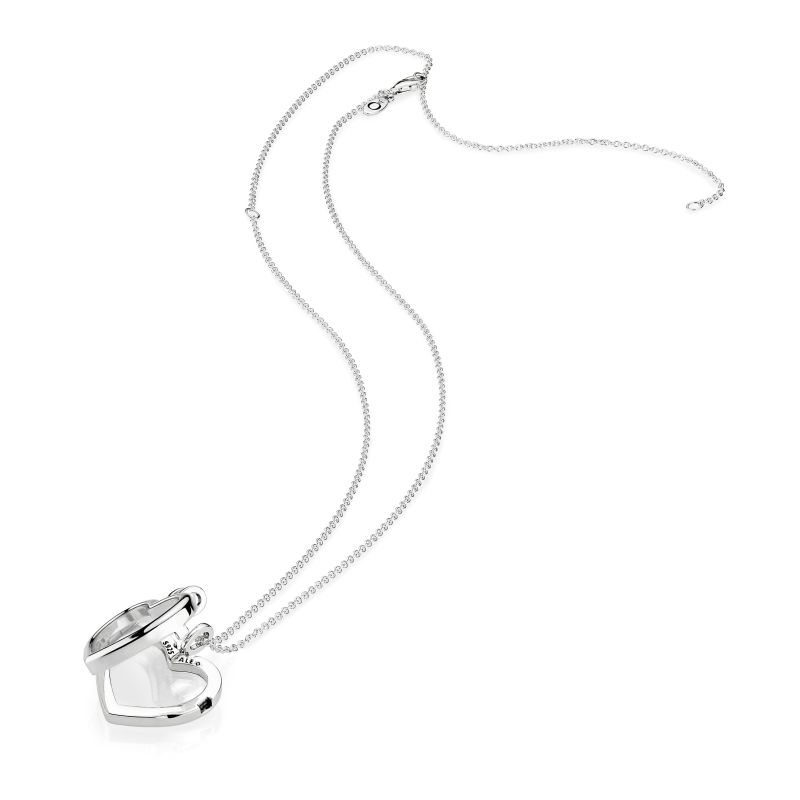 Der Herzanhänger aus Sterling-Silber mit luxuriösem Saphir-Kristallglas wird von einer 60 cm langen Kette gehalten, die in drei unterschiedlichen Längen getragen werden kann. Neue „Love“ Herz-Plättchen bilden den perfekten Hintergrund, um das Medaillon-Set und damit die Einzigartigkeit eines jeden noch besser zu betonen.