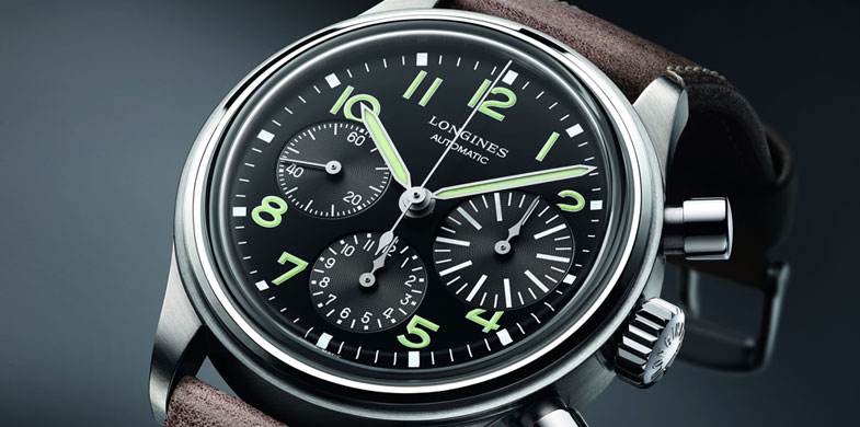 Das Design dieser Neuheit ist typisch für die Glanzzeit der Luftfahrt. Ganz im Sinne einer Fliegeruhr verfügt das Modell über ein leicht ablesbares Zifferblatt, das den Minutenzähler hervorhebt. Imposante Drücker ermöglichen es dem Träger, sie auch mit Handschuhen zu bedienen.